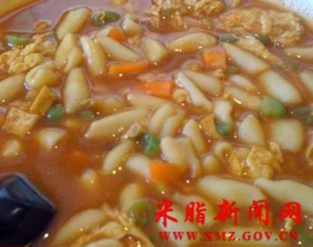 ![]() 荞面仡饦,米脂传统饭食之一.有一句非常著名的陕北民歌道:“荞面仡饦羊腥汤,死死活活相跟上。”荞面仡饦有名,倒不如说民歌更有名,其直白的语言所表达的忠贞之情绝不亚于海枯石烂之类的盟誓。每当提起荞面,几乎所有陕北人都会脱口而出这句民歌。 “手搓得溜溜转,好心操在你身上。”荞面和成团,搓成条状,略硬,揪指甲盖大小一节,放在手掌上用拇指麻利地一搓。即成一个。细小,边缘卷曲,空心中凹,圆润光滑。女子搓时,手指翻飞,如天女散花,而满案的又拟“大珠小珠落玉盘”。搓是陕北女子的一手绝活。下锅,快火几分钟就可食。捞入汤碗,浇上汤料即成。荞面,与羊肉汤搭配,珠联壁合,口味颇佳,最能体现其独特风味,故有“荞面羊腥汤”之说,为地道风味面食。从食品物性而言,荞麦性寒,羊肉性温,温寒相成,更益于人体健康,这也就是荞面多与羊肉为伍的营养学原因。荞面,特色在于中空部分易浸入油汤,吃起来坚韧爽口,油滑圆润。 |